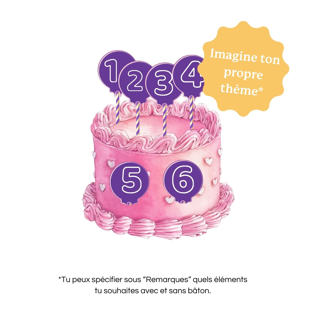 Nos cake toppers personnalisés apportent une touche d'originalité et d'émotion à ton gâteau, en rendant chaque détail unique.